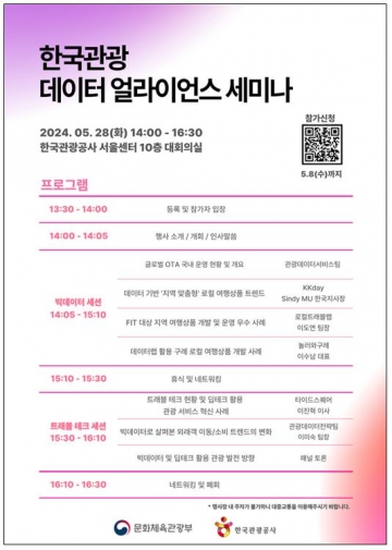 문화체육관광부(이하 문체부)는 관광산업 현장의 수요를 반영해 한국관광공사(이하 공사)와 함께 5월 28일(화) 한국관광공사 서울센터에서 ‘한국관광 데이터 얼라이언스 세미나’를 개최했다.