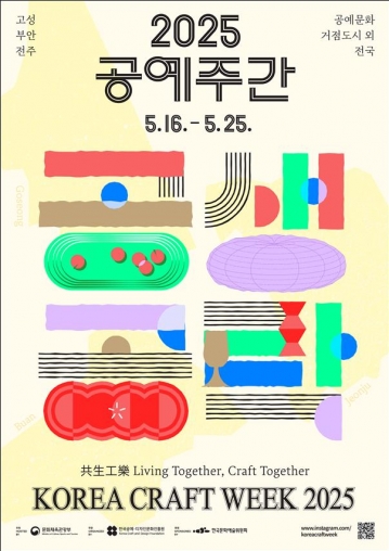 문화체육관광부(이하 문체부)는 (재)한국공예디자인문화진흥원(이하 공진원)과 함께 5월 16일(금)부터 25일(일)까지 ‘2025 공예주간(Korea Craft Week 2025)’을 개최한다. 올해로 8회 차를 맞이한 ‘공예주간’은 공예의 아름다움과 가치를 알리고 공예문화를 확산하기위해 전시, 체험, 판매, 강연 등 다채로운 프로그램을 선보이는 공예문화축제이다.