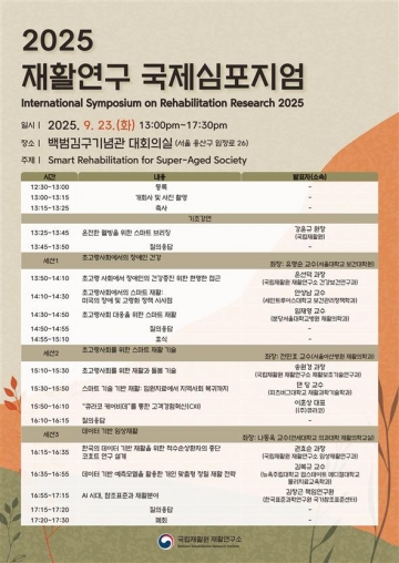 - 초고령사회를 위한 스마트 재활(Smart Rehabilitation for Super-Aged Society) 주제로 2025년 재활연구 국제심포지엄 개최