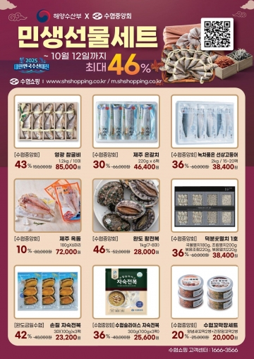 해수부는 조기, 옥돔, 갈치, 고등어, 전복 등 제수용 제품과 소비 촉진이 필요한 수산물로 구성된 ‘민생선물세트’를 기존가격 대비 최대 46% 할인된 가격으로 온라인(수협쇼핑, 카카오톡 선물하기)플랫폼에서 판매 중이다.